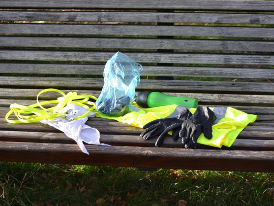 - Geschirr für den Hund (wenn er immer eines trägt, ein anderes als sonst, oder ein Halstuch)