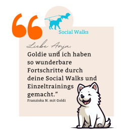Viele Menschen sind überrascht, was ihr Hund bei einem Social Walk für Entscheidungen treffen kann. Zum Beispiel dem anderen Hund ruhig zu signalisieren, dass man keinen